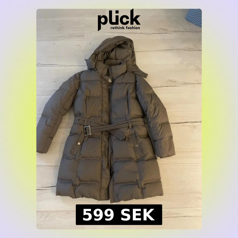 Säljer en brun lång dunjacka från Esprit med huva och bälte i midjan. Jackan har quiltad design, dragkedja och knappar framtill samt två stora fickor med knappstängning. Perfekt för kalla dagar och riktigt mysig att bära.