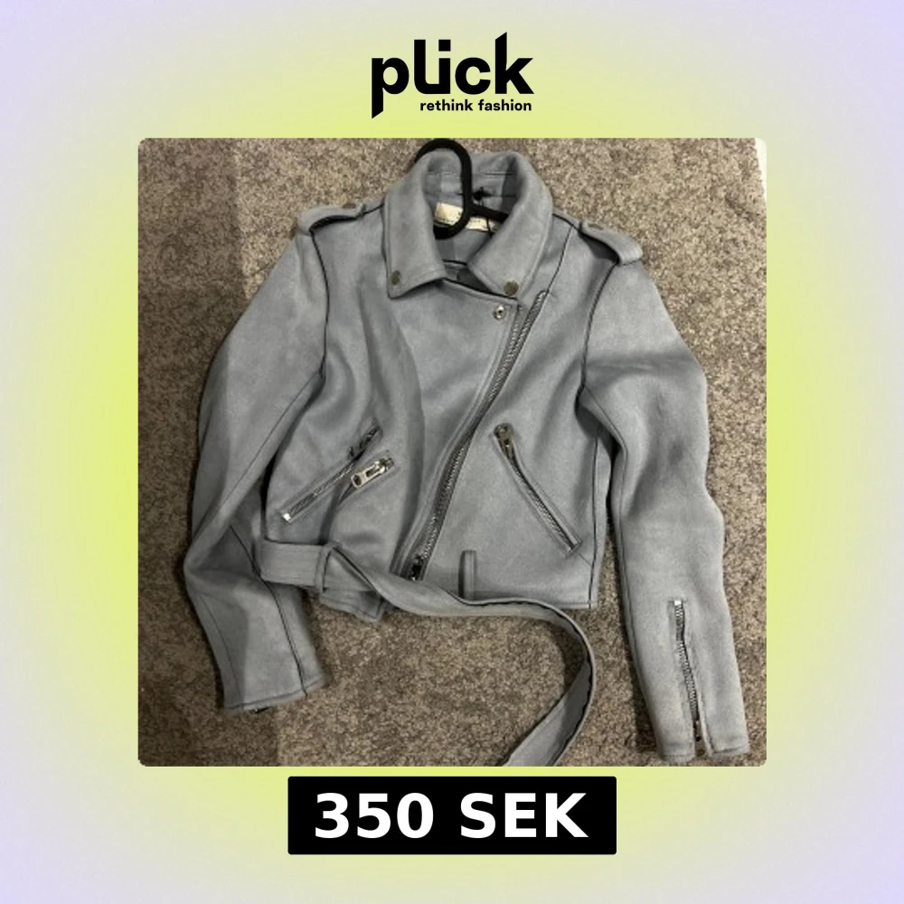Snygg ljusgrå bikerjacka från Zara Basic i mockaliknande material. Jackan har klassisk krage, axelklaffar, flera silvriga dragkedjor och bälte i midjan. Perfekt för dig som vill ha en edgy look med stilrena detaljer.