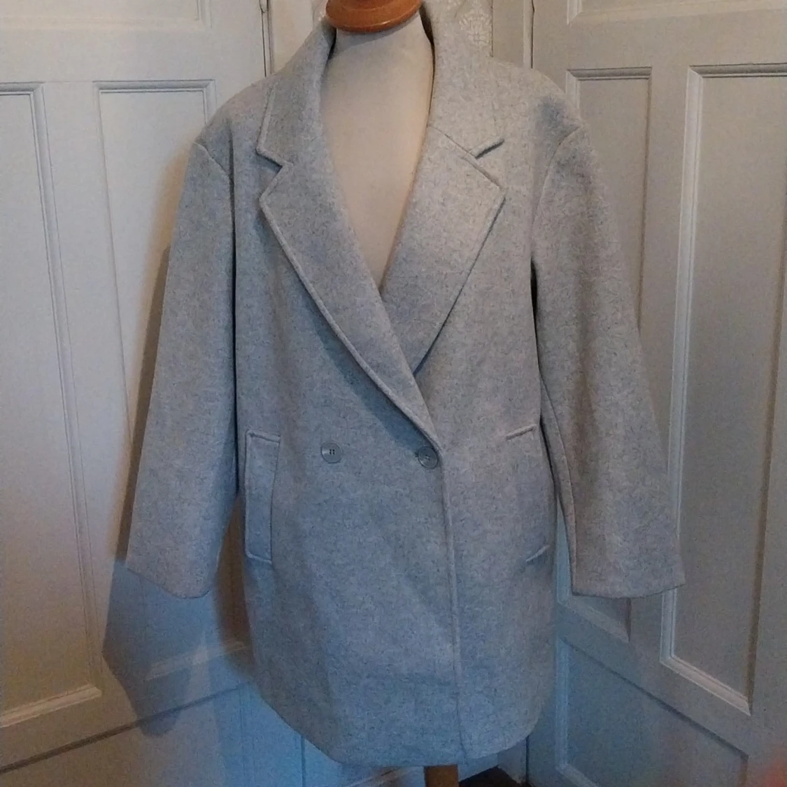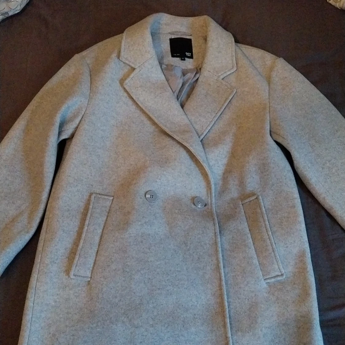 Säljer en stilren ljusgrå kappa från 157 i storlek M. Jackan har klassisk krage, dubbelknäppning med knappar och två fickor framtill. Perfekt för dig som gillar enkel och clean stil. Materialet känns mjukt och passar bra till höst och vår. Aldrig använd