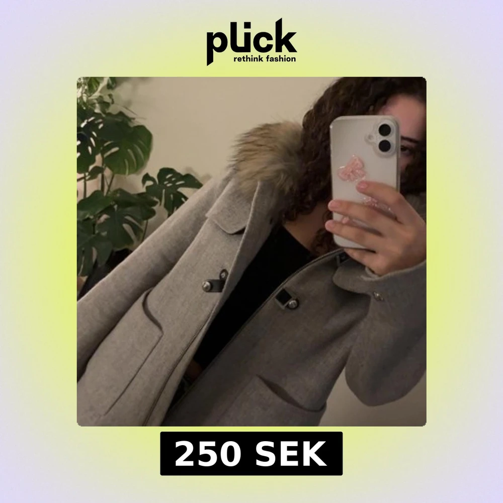 Snygg ljusgrå kappa med stor fuskpäls på kragen och coola detaljer med knappar och dragkedja. Jackan har stora fickor framtill och en rak, klassisk passform. Perfekt för dig som vill ha en stilren och trendig look under kallare dagar.