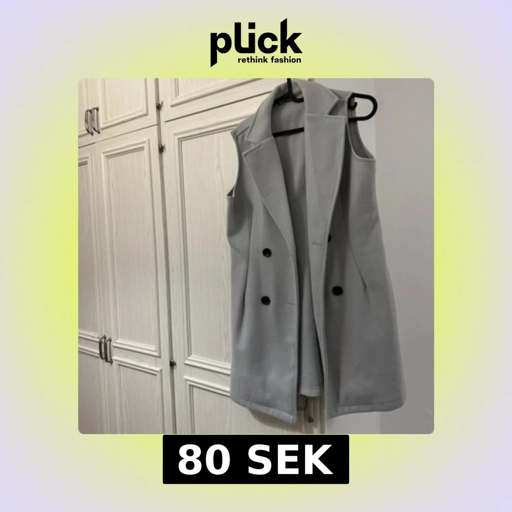 Snygg ljusgrå väst med klassisk krage och svarta knappar framtill. Västen är lång och har en stilren, rak passform som ger en cool look. Perfekt att slänga över en hoodie eller tröja för extra lager. Materialet känns mjukt och har en lite dressad vibe.