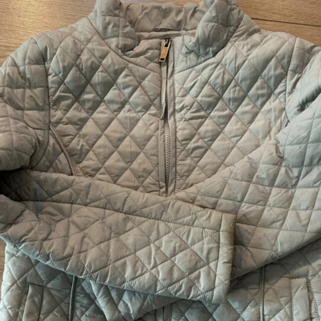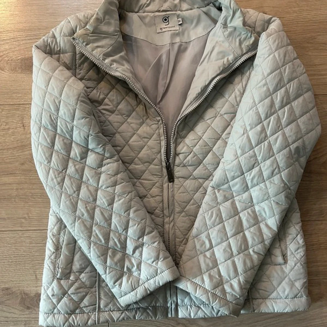 Quiltad jacka i ljusgrått från greenpoint med dragkedja framtill och ståkrage. Jackan har ett rutigt mönster och är tillverkad i syntetmaterial. Perfekt för dig som gillar stilren och enkel design med lite edge.