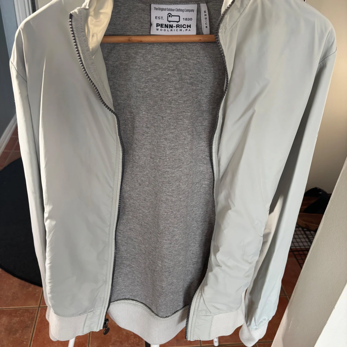 Säljer en stilren ljusgrå vindjacka från Woolrich. Knappt andvänd då den är för liten. Jackan är mer S/M. Skriv gärna frågor vid funderingar.