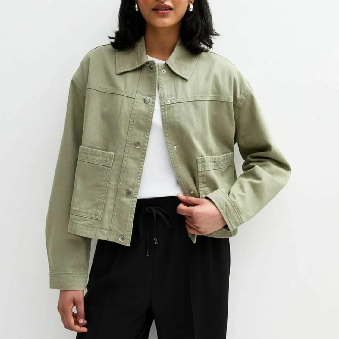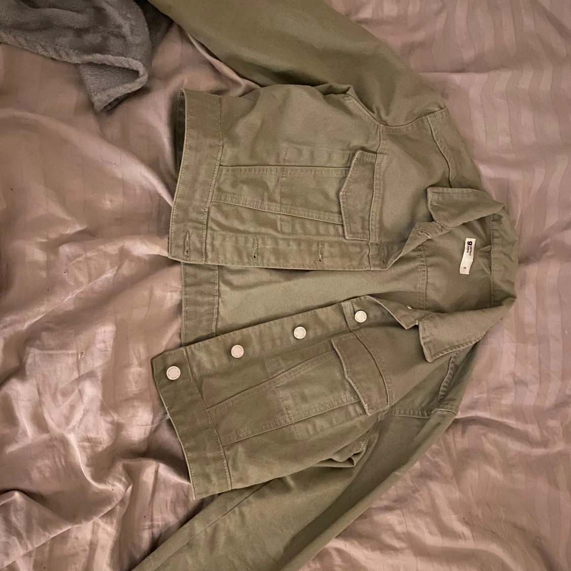 (OBS den bara liknar jackan på första bilden!) Säljer en ljusgrön ”croppad” jeansjacka från gina! Jackan har knappar och raka ärmar❤️