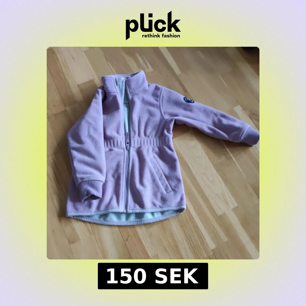 Säljer en ljuslila fleecejacka från Polarn O. Pyret med hög krage, hel dragkedja och ribbade muddar. Jackan har ett broderat märke på ärmen och praktiska fickor framtill. Perfekt för kyliga dagar och enkel att matcha med andra plagg.