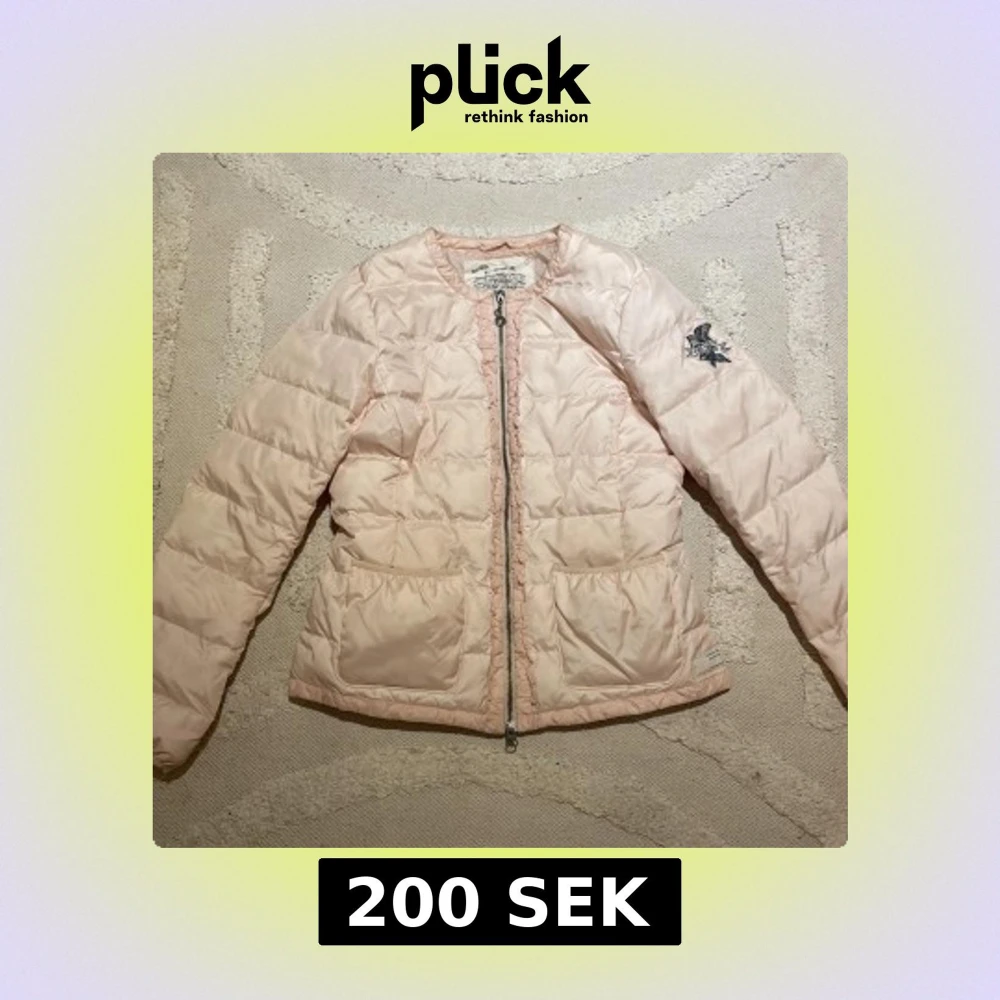 Säljer en ljusrosa dunjacka från Odd Molly pågrund av att jag helt enkelt tröttnat. Jackan har ett snyggt märke på ärmen och är perfekt för kyligare dagar. Den quiltade designen ger en stilren look.