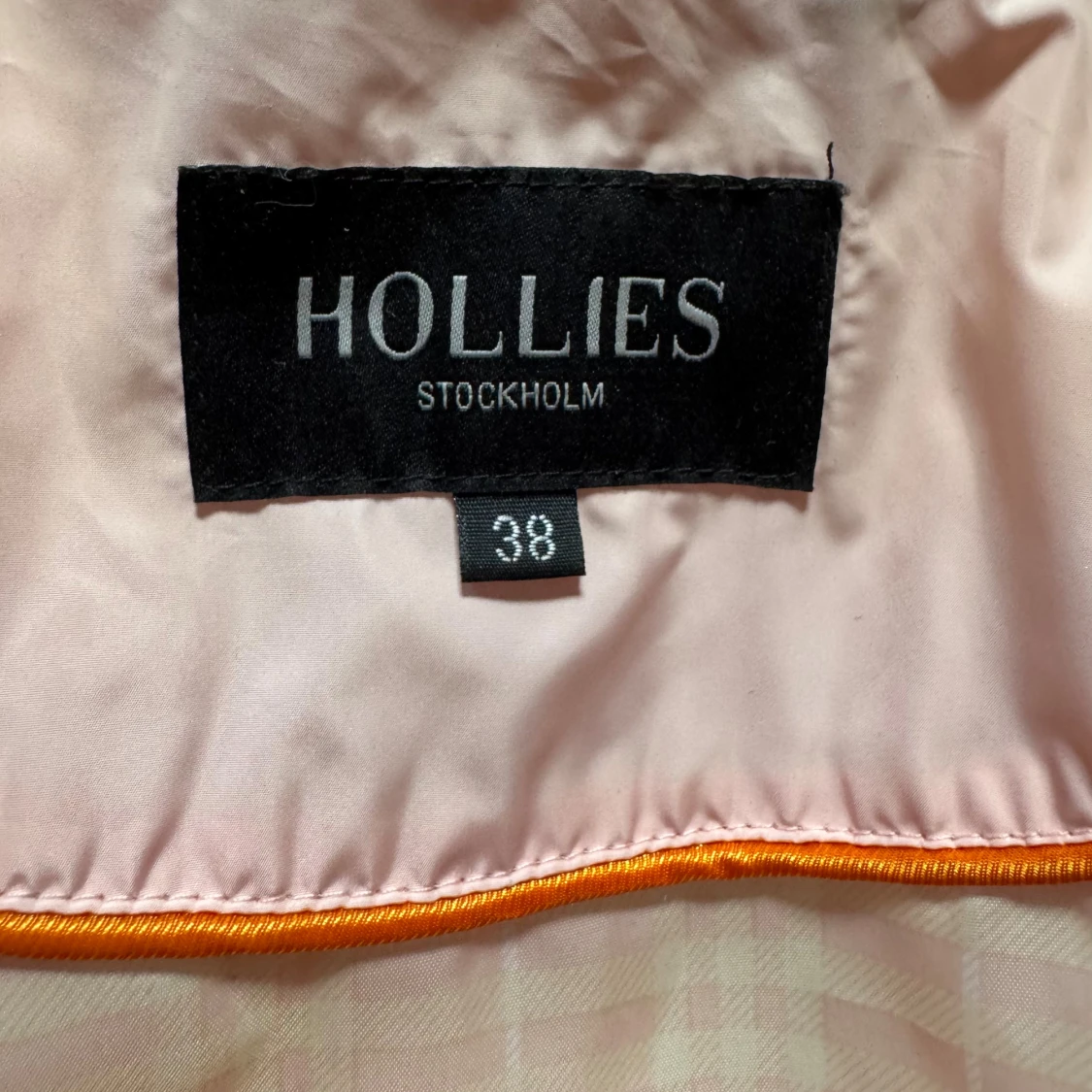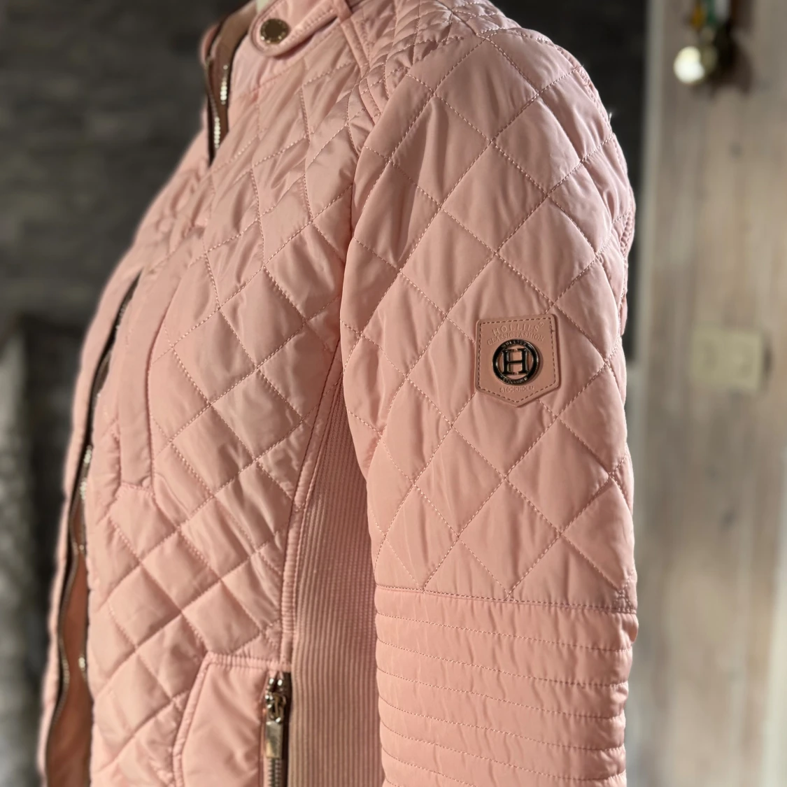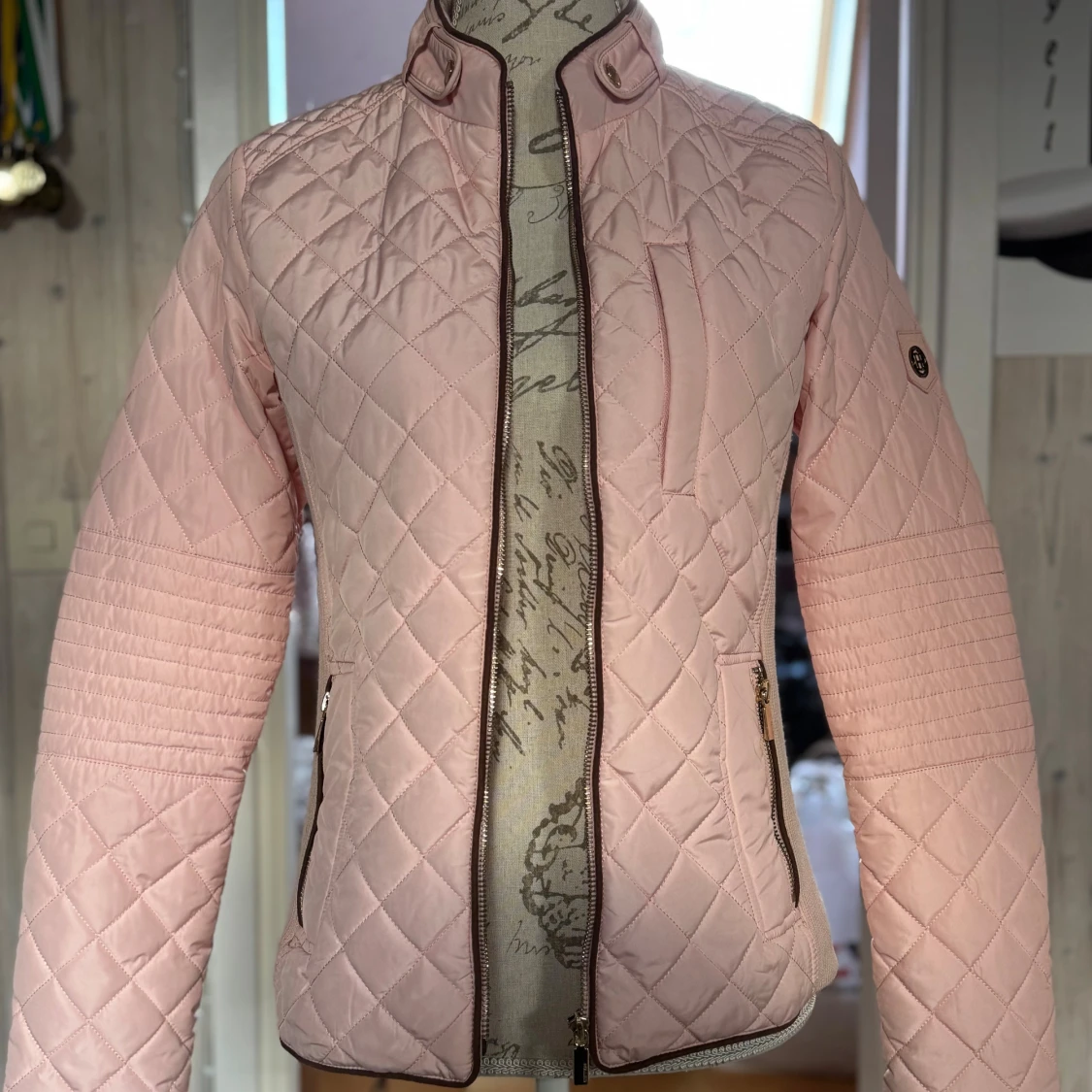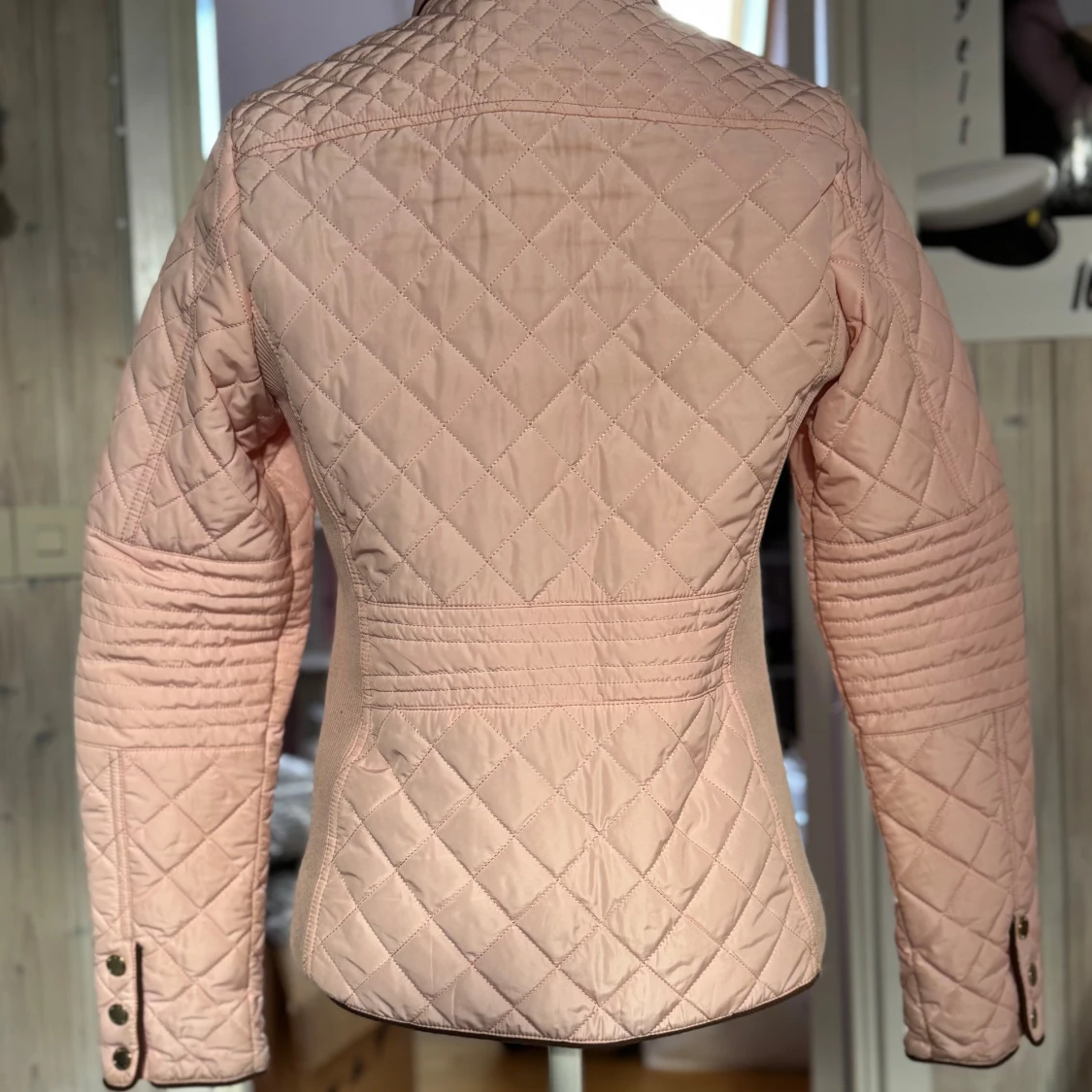 Säljer en ljusrosa quiltad jacka från Hollies i storlek 38. Jackan har snygga detaljer som dragkedjor i guld, ståkrage med knappar och ribbade partier i sidorna. Perfekt för vår och höst när du vill ha en stilren look.