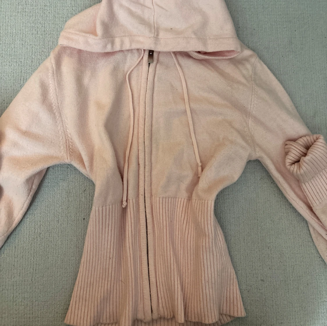 Supersöt ljusrosa stickad hoodie från Gina Tricot med dragkedja framtill och ribbade detaljer vid midja och ärmslut. Jackan har huva med snörning och är långärmad, perfekt för en chill och avslappnad look.