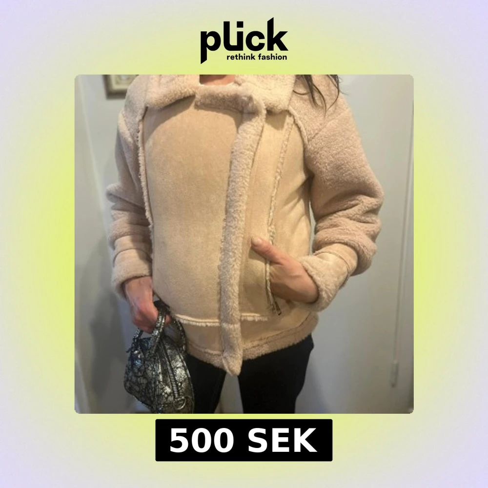 Säljer en ljusrosa teddyjacka med mjuk, fluffig yta och bred krage. Jackan har två sidofickor med dragkedja.