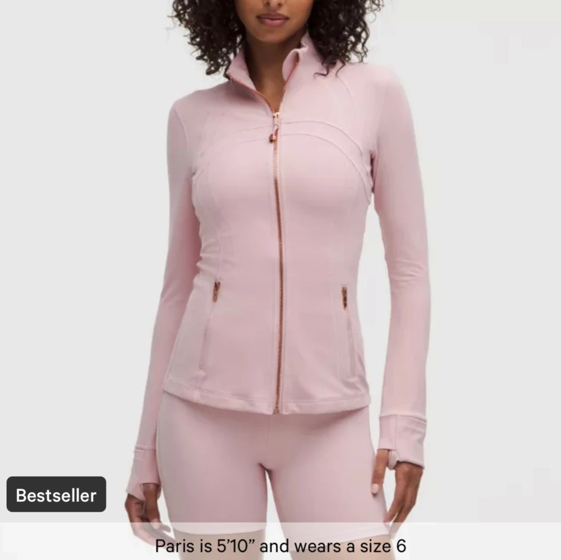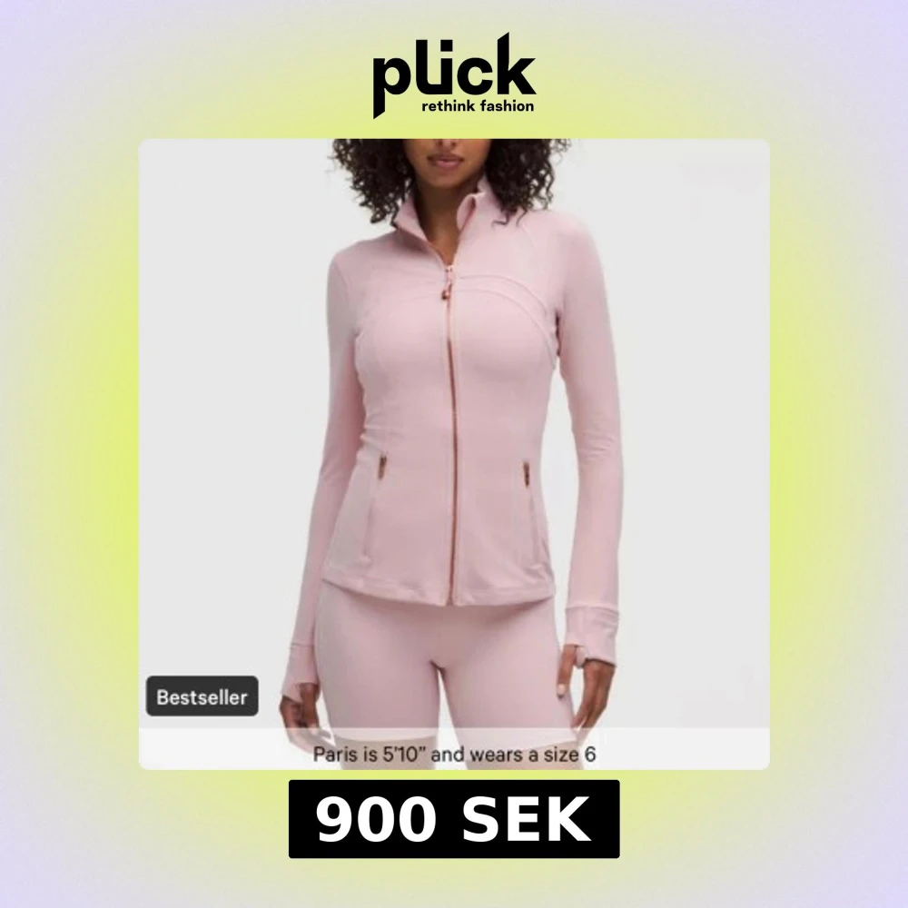 Snygg ljusrosa träningsjacka med hel dragkedja framtill. Jackan har långa ärmar och två fickor med dragkedja. Figurnära passform som passar perfekt till träning. Från lullulemon i storlek 2