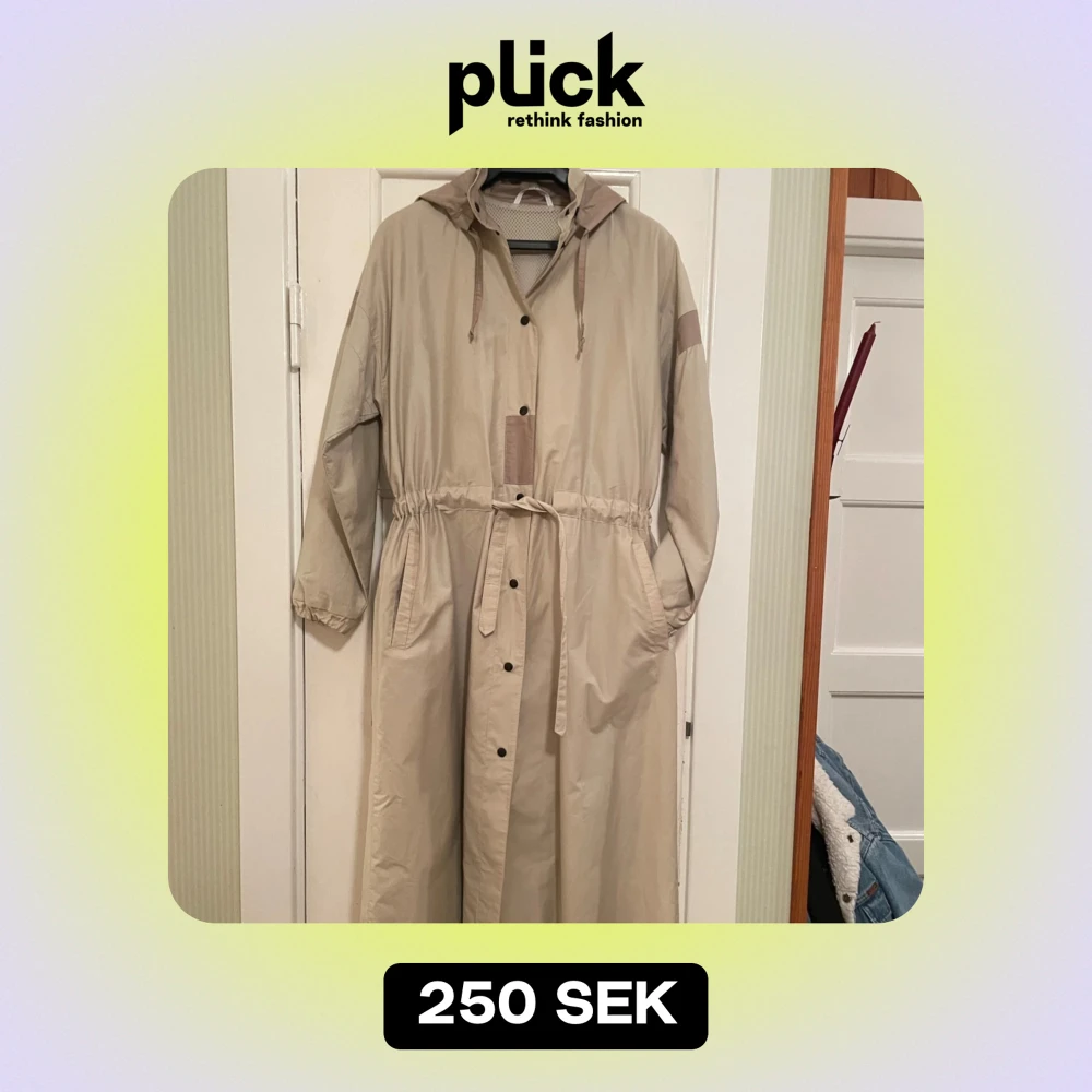 Säljer en beige tunn men vindtät sommarkappa från Luhta i mycket bra skick. Den har en huva och tryckknappar framtill samt ett knytband i midjan för en justerbar passform. 116 cm lång Perfekt för vår och höst! 🧥