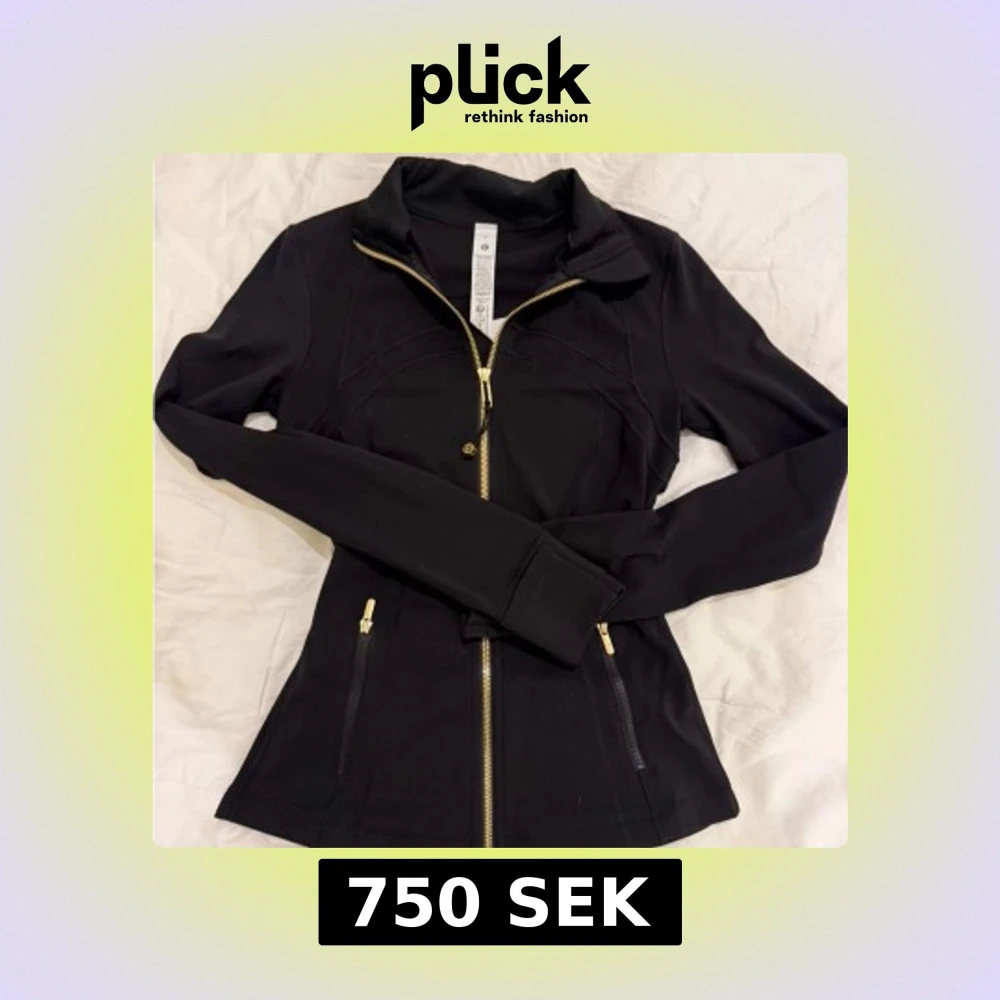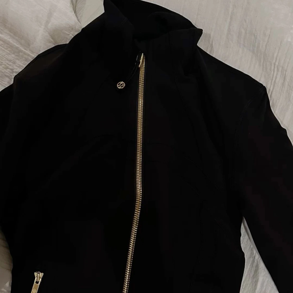 Snygg svart jacka från Lululemon med guldiga dragkedjor och figurnära passform.. 💕