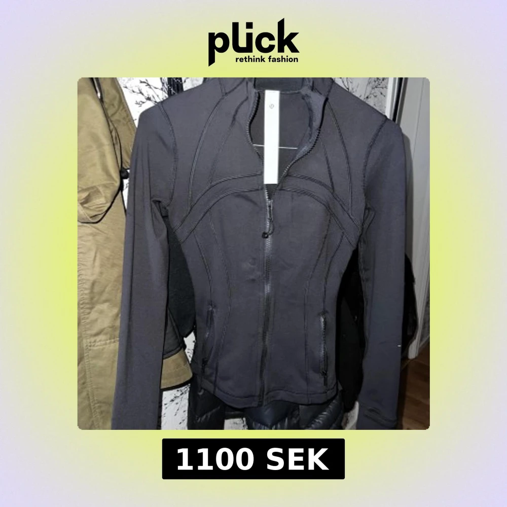 Snygg svart jacka från Lululemon med dragkedja framtill. Jackan är helt ny o h helt oanvänd. Den är i storlek 0 som motsvarar xxs men passar även xs. Jackan har en figurnära passform och långa ärmar.