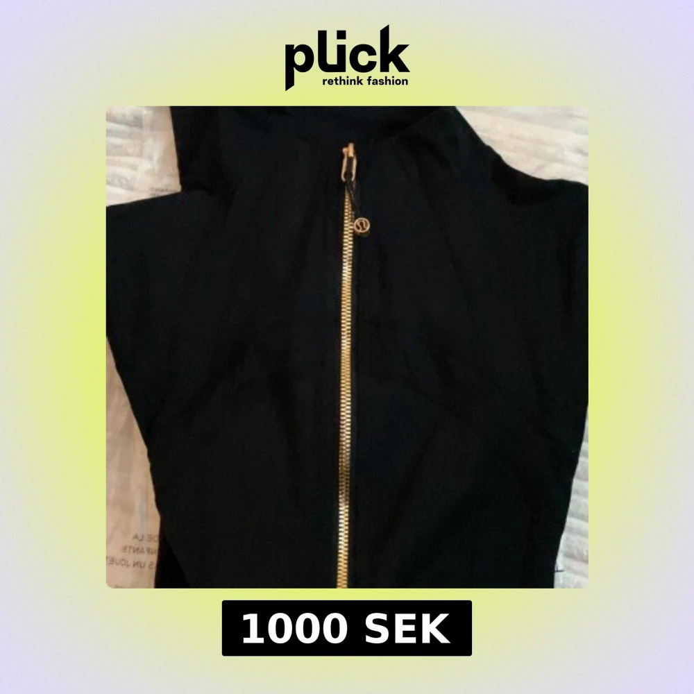 Svart Lululemon jacka med guldig dragkedja. Aldrig använd och är i storlek XS (storlek 4)🩷skriv vid fler frågor, kommer inte ta emot bud under 900🩷
