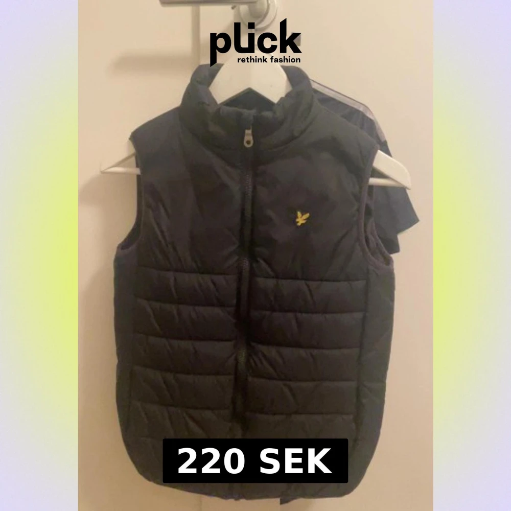 Svart dunväst från Lyle & Scott Junior med gul broderad logga på bröstet. Västen har quiltad design, hög krage och dragkedja framtill. Perfekt för lager-på-lager och snygg till både hoodie och t-shirt. Storek syns på bild 2!!