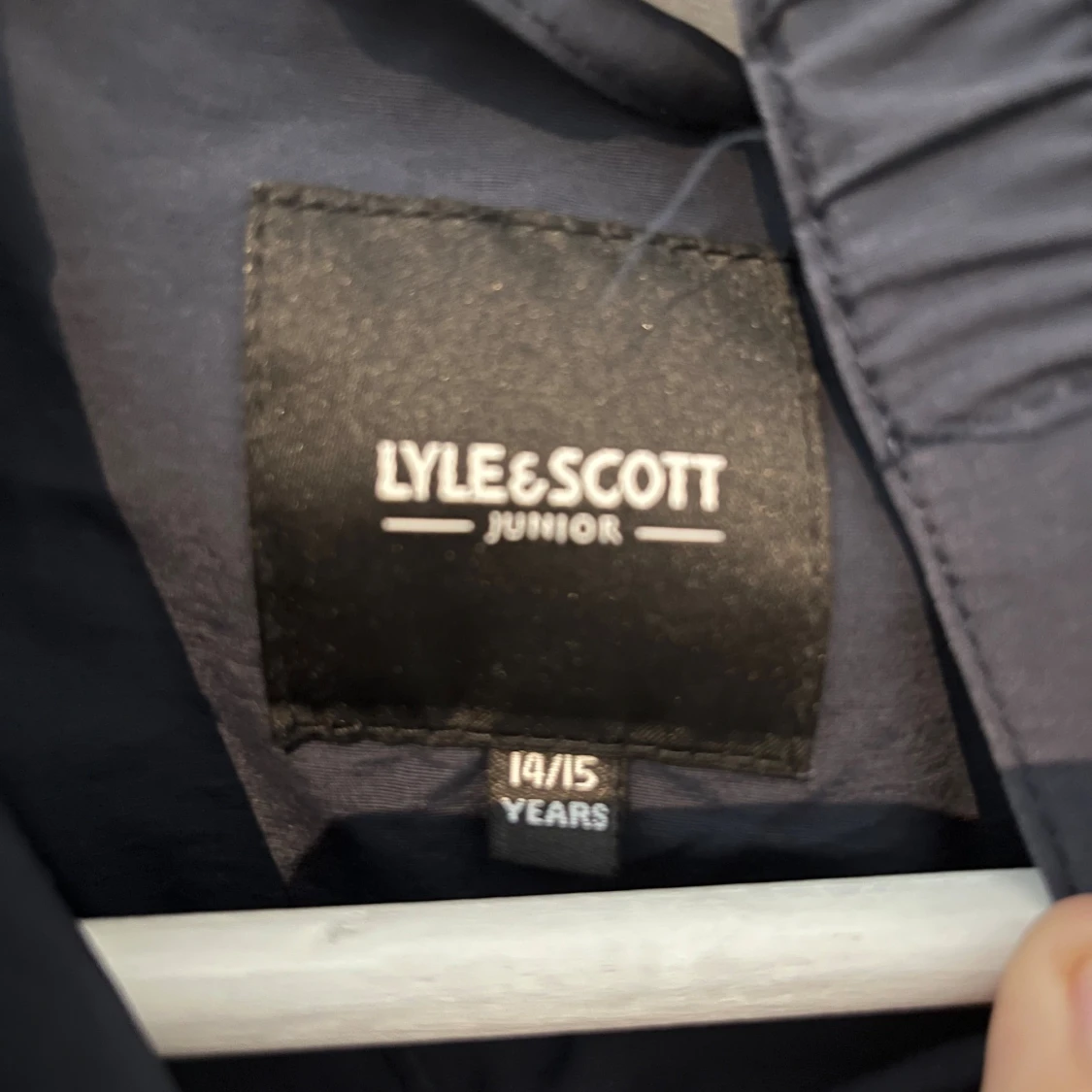 Svart vindjacka från Lyle & Scott med huva och dragkedja framtill. Jackan har två stora fickor med knappar och den klassiska gula loggan på bröstet. Perfekt för blåsiga dagar och enkel att matcha med allt.