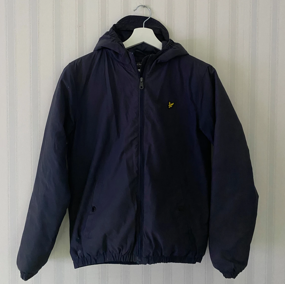 Säljer en stilren mörk blå vindjacka från Lyle & Scott i storlek 14/15 år. Perfekt som höst, vår och sommar jacka. Passar både till vardags och lite finare tillfällen.