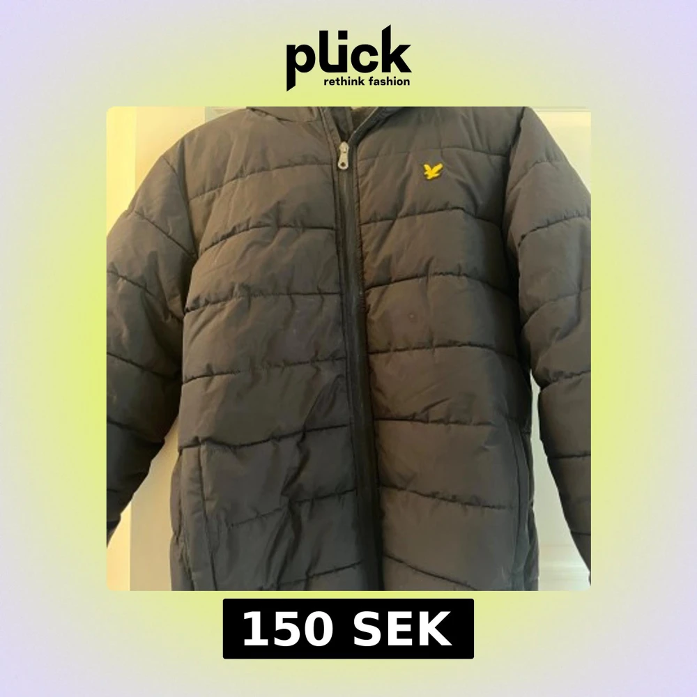 Svart pufferjacka från Lyle & Scott med gul logga på bröstet. Jackan har huva, dragkedja framtill och quiltad design. Perfekt för kyliga dagar och riktigt skön att bära. Passar dig som gillar en enkel men snygg stil. Jackan har ett litet hål på ärmen, därav billig. Annars i jättebra skick.