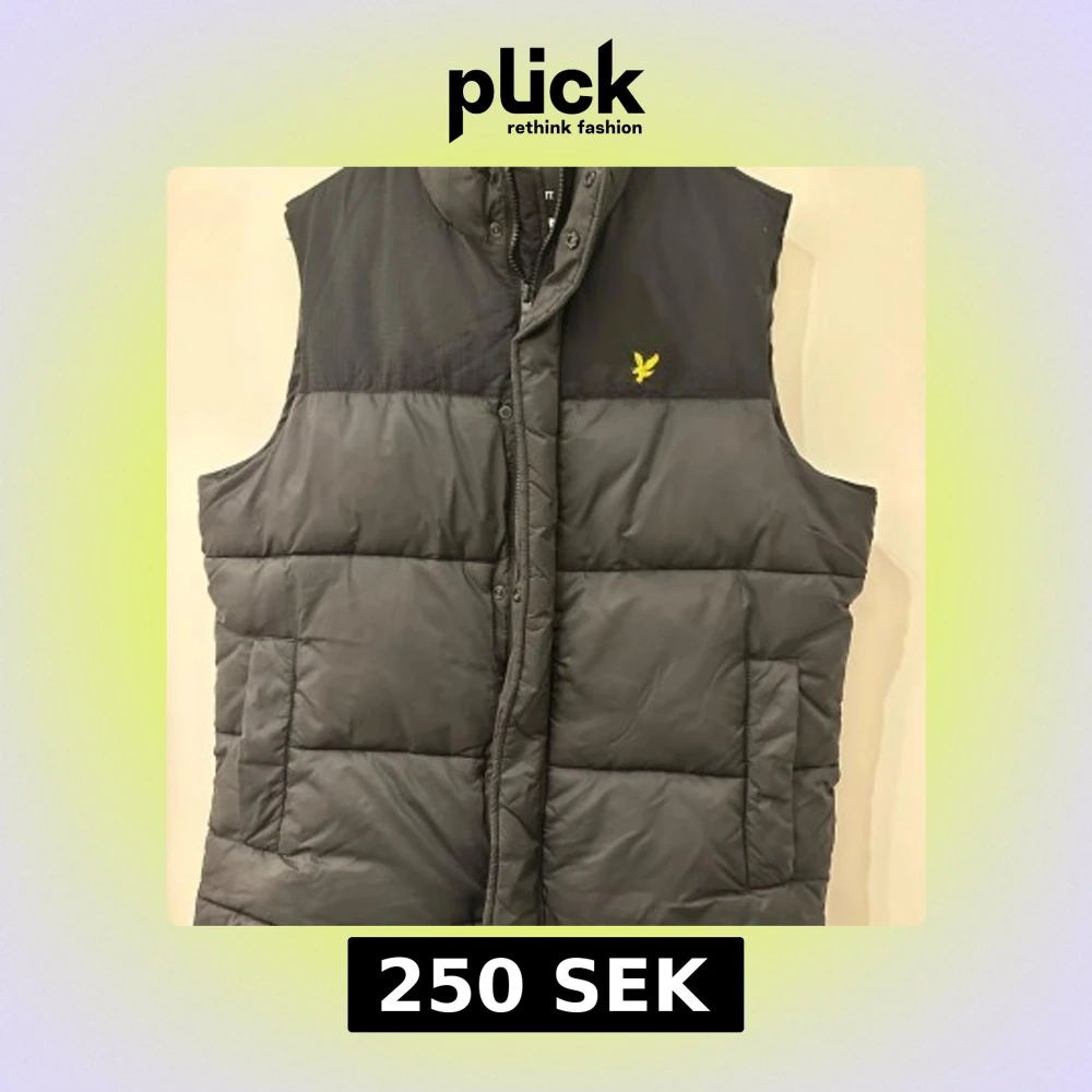 Snygg svart dunväst från Lyle & Scott med gul logga på bröstet. Västen är quiltad och har hög krage samt dragkedja och tryckknappar framtill. Perfekt att slänga över en hoodie för extra värme. Klassisk och stilren design.