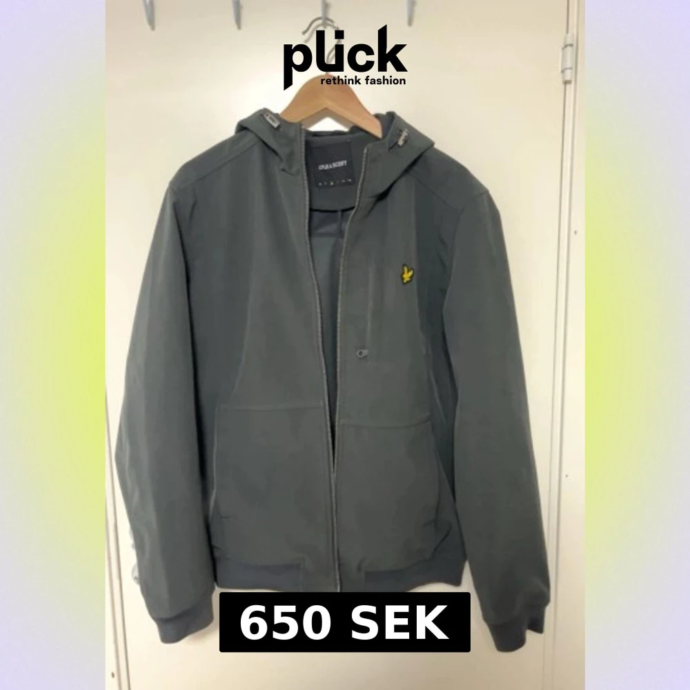 Ny pris koster 1650kr,Snygg grå vindjacka från Lyle & Scott med huva och dragkedja framtill. Jackan har det klassiska gula fågel-loggan på bröstet, två stora fickor och ribbade muddar. Perfekt för blåsiga dagar och enkel att matcha med det mesta.
