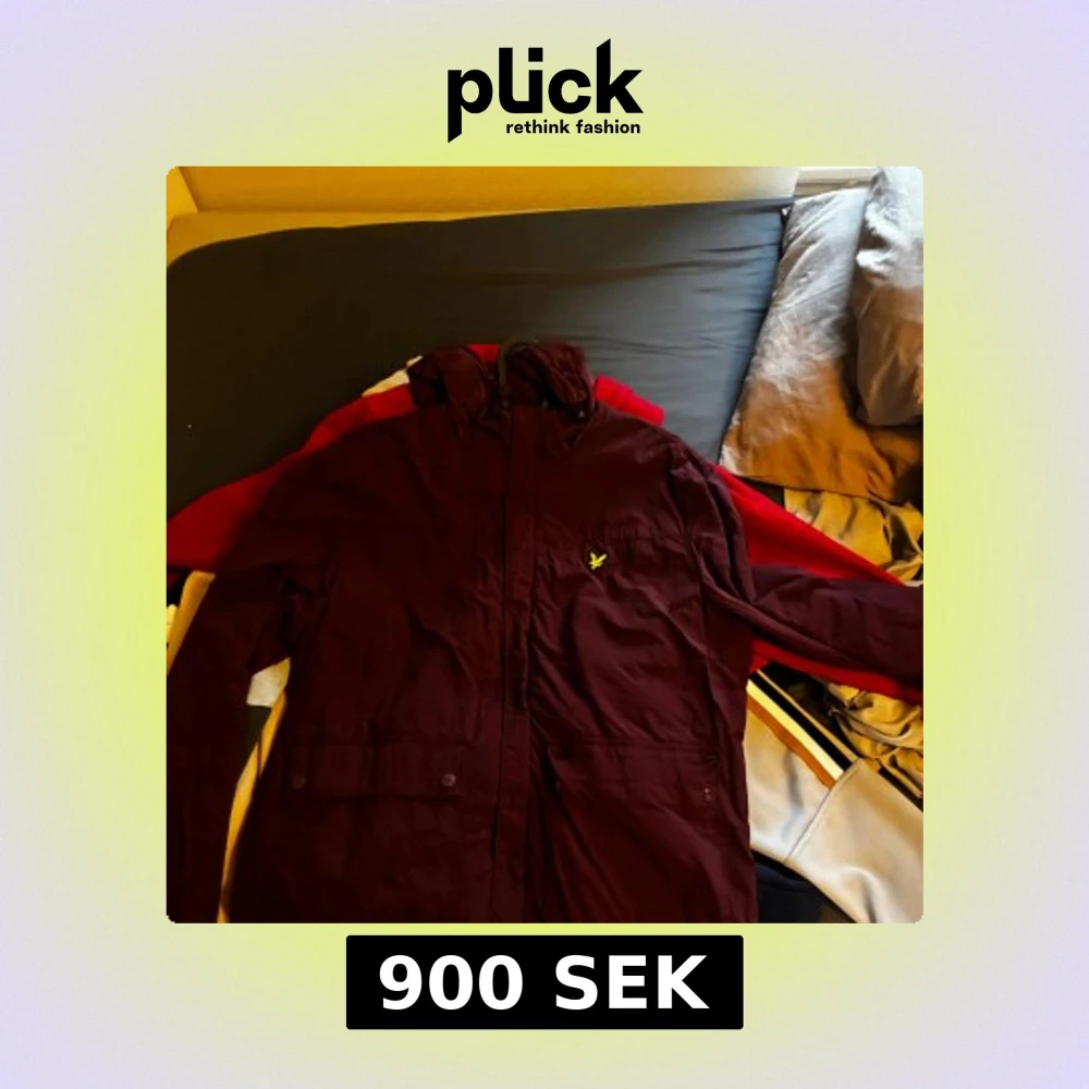 Snygg vinröd vindjacka från Lyle & Scott med huva och gul logga på bröstet. Jackan har långa ärmar, två fickor med knappar och dragkedja framtill. Perfekt för dig som vill ha en stilren jacka med sportig vibe.