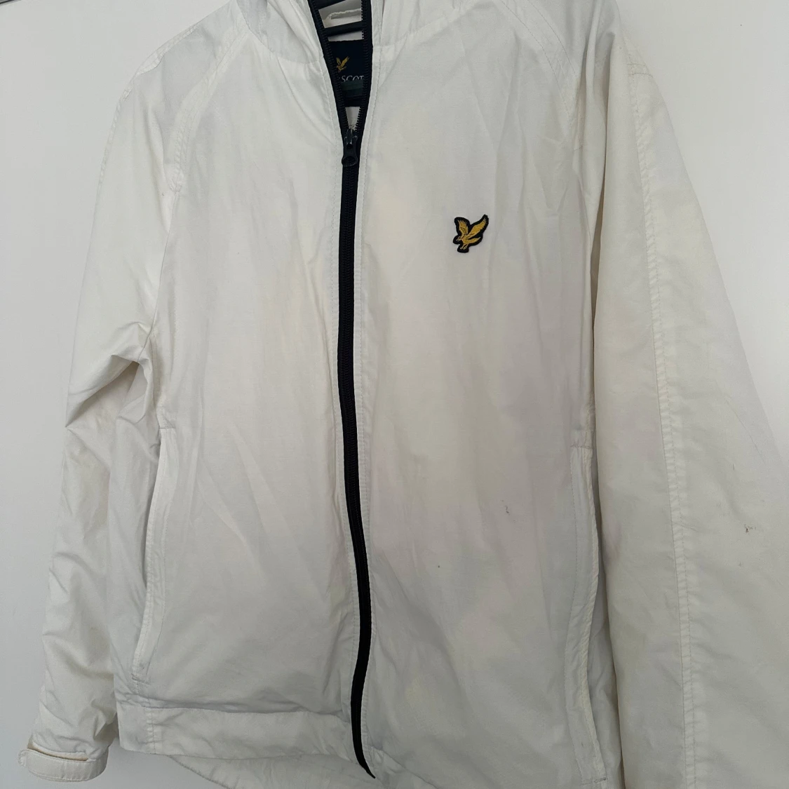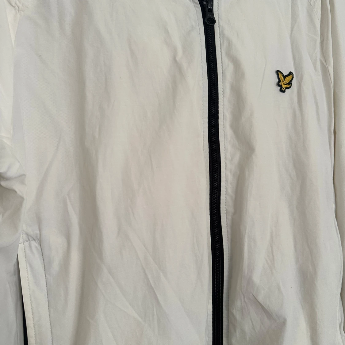 Snygg vit vindjacka från Lyle & Scott i storlek M. Jackan har svart dragkedja framtill, även en väldigt svår modell att få tag på. Jackan är använd men har inga skador osv och är i fint skick. Priset kan diskuteras vid snabbköp.