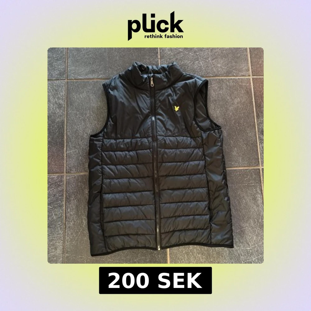 Snygg svart lyle Scott dunväst med dragkedja och broderad logga på bröstet. Perfekt för lager-på-lager under kyliga dagar. Västen har en stilren design och är lätt att matcha med olika outfits. Den är 14/15 år men passar bra mig då jag säljer för den blivit för kort, passar nog perfekt om du är c 170
