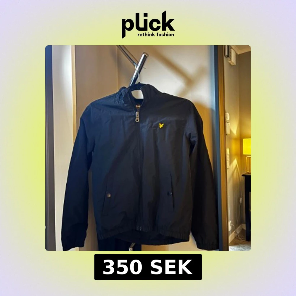 Svart vindjacka från Lyle & Scott med gul logga på bröstet. Jackan har dragkedja framtill, två fickor med knappstängning och resår vid ärmslut och midja. Perfekt för blåsiga dagar och enkel att matcha med det mesta.