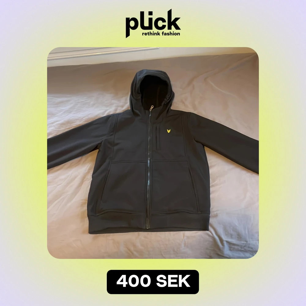 Säljer en svart jacka med huva från Lyle & Scott i storlek 14/15 år och passar en XS/S. Jackan har en dragkedja framtill och är i mycket bra skick. Perfekt för höst och vår, med en stilren design och bekväm passform. Nypris 1100kr