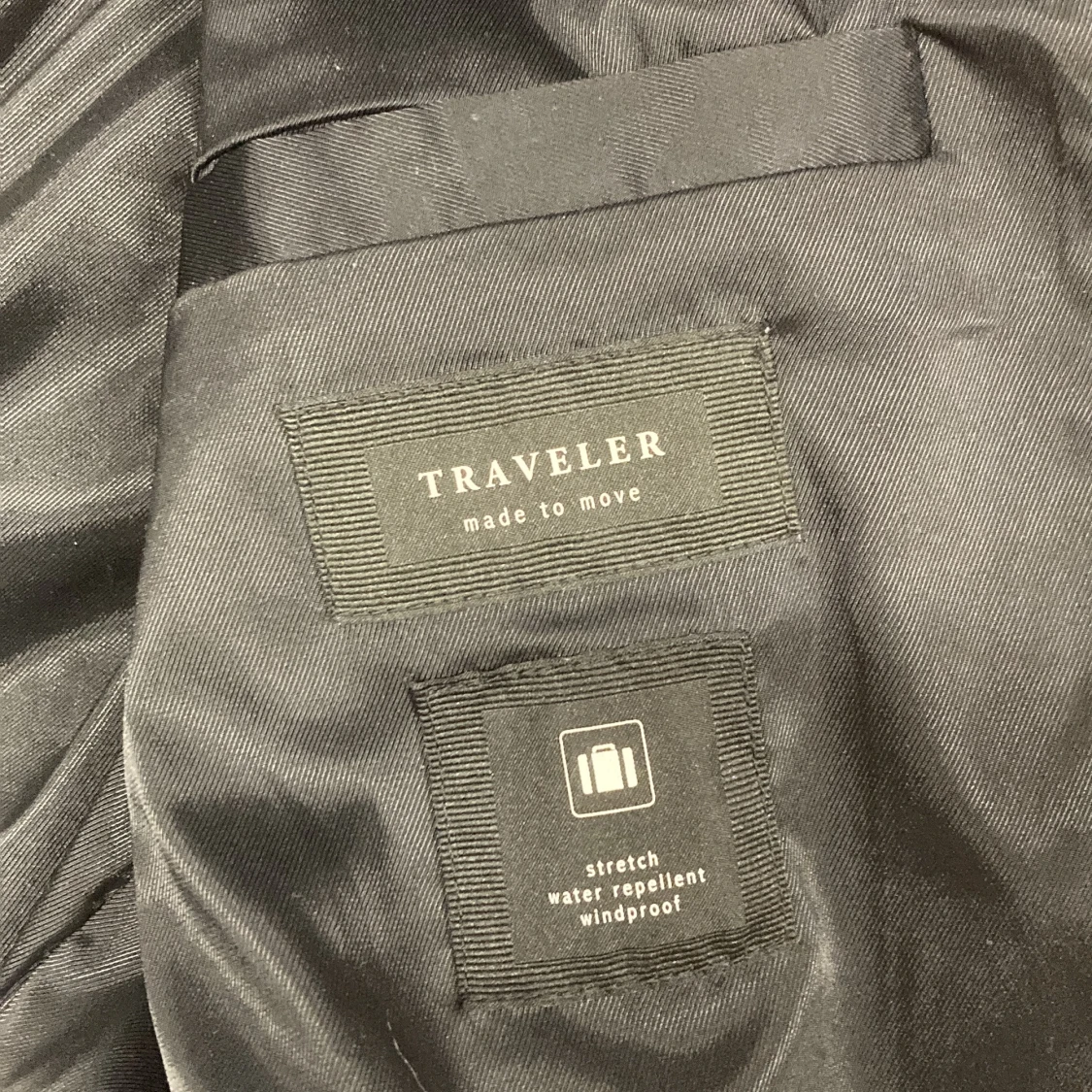 Säljer en stilren mörkblå jacka från Traveler. Jackan har en dragkedja framtill och två bröstfickor med knappar. Den är designad för att vara stretchig, vattenavvisande och vindtät. Perfekt för dig som är på språng och vill ha en funktionell men snygg look.