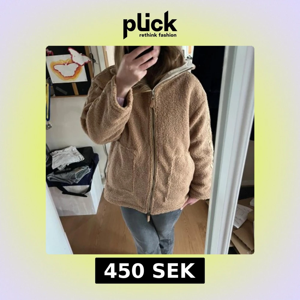 Mysig brun teddyjacka med hel dragkedja och två stora fickor framtill. Jackan har hög krage och är fodrad med quiltat tyg på insidan. Perfekt för kyligare dagar och ger en avslappnad look. Normalt har jag storlek S men denna har jag M på. Jackan är oanvänd.