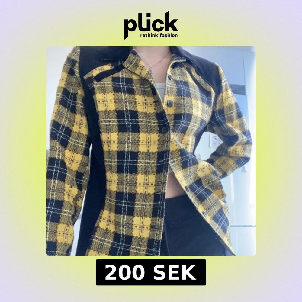 Snygg gul och svart rutig jacka med knappar framtill. Jackan har långa ärmar och en klassisk krage. Ger clueless vibes