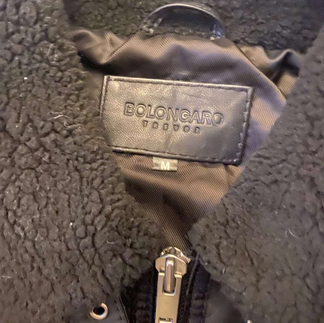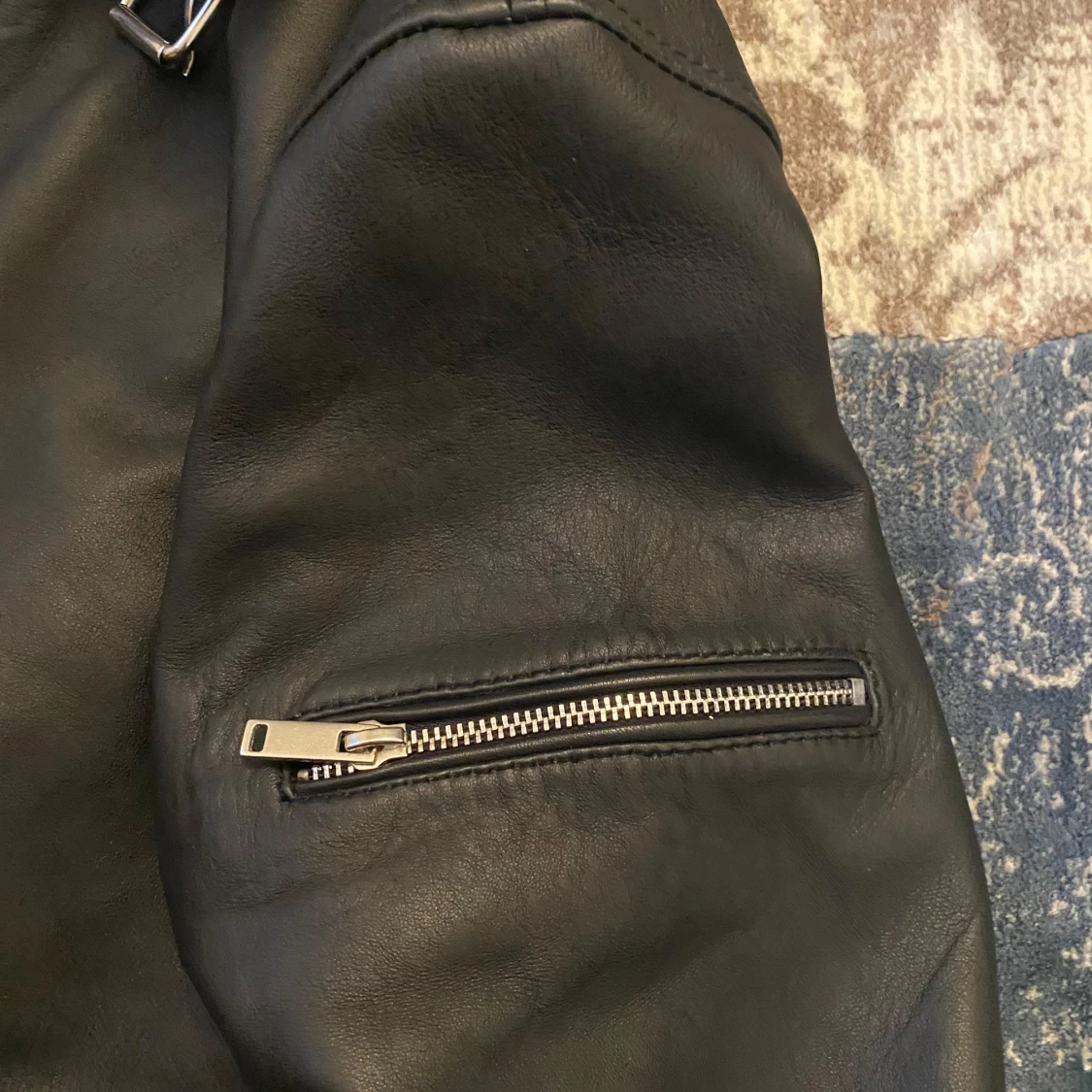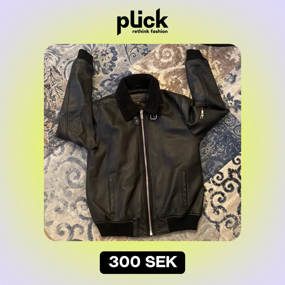 Supersnygg svart läderjacka med en dragkedje detalj på ena armen