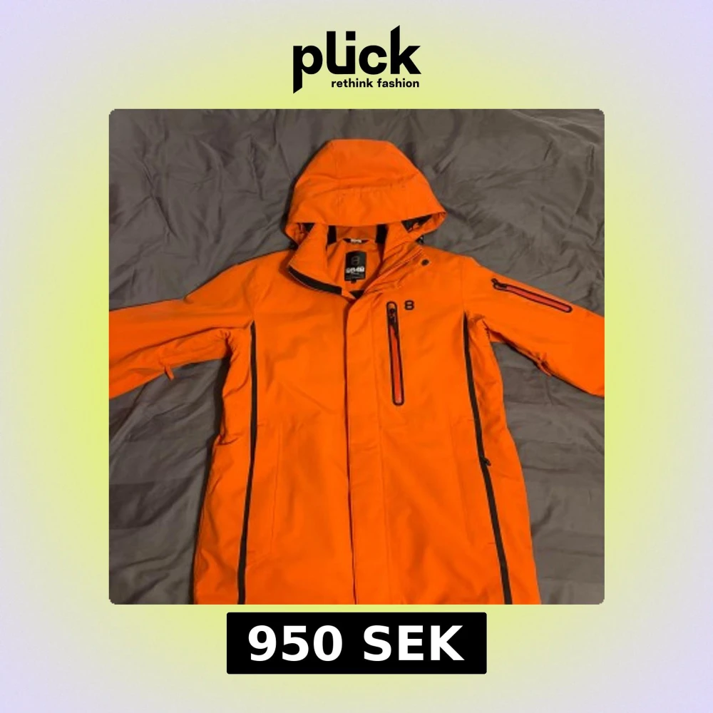 Säljer en orange skidjacka från 8848 Altitude med huva och flera praktiska fickor. Jackan har dragkedja och är perfekt för kyligare väder. Den är designad för att hålla dig varm och bekväm under utomhusaktiviteter. Nypris cirka 2500kr