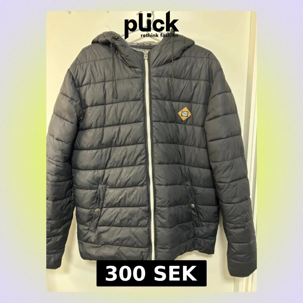 Svart pufferjacka med huva från Only & Sons. Jackan har quiltad design, dragkedja framtill och två fickor med knappstängning. Perfekt för kyliga dagar och har en stilren look med diskret logga på bröstet.