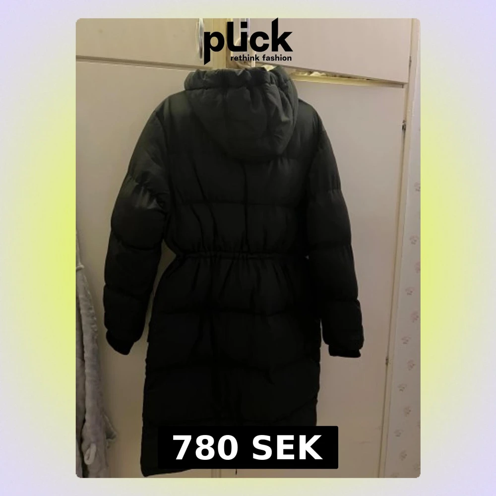 Säljer en svart lång pufferjacka med huva och dragsko i midjan. Jackan har flera fickor, dragkedja och knappar framtill samt långa ärmar. Perfekt för kalla dagar.🌸Passar också en S
