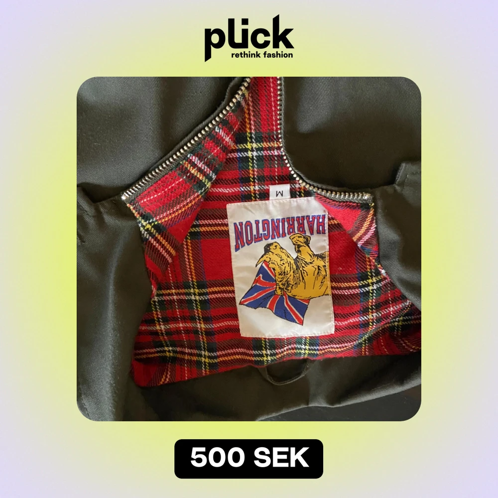 Säljer en klassisk olivgrön Harringtonjacka i storlek M. Jackan har en snygg rutig insida i rött och svart, och stängs med dragkedja. Perfekt för höst och vår! 🧥🍂