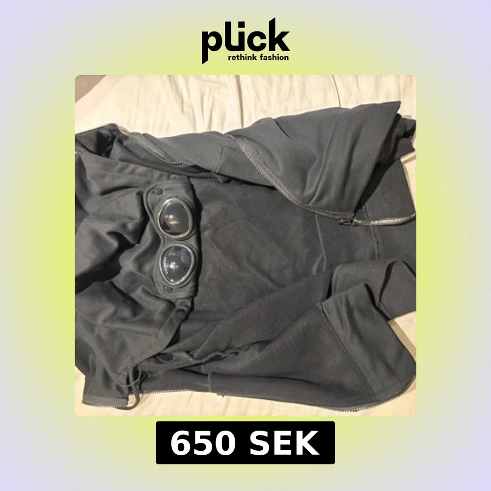 Svart bomberjacka från C.P. Company med ikoniska goggles i huvan. Jackan har dragkedja framtill och är tillverkad i mjuk bomull. Snygg och unik design som sticker ut, perfekt för dig som gillar streetwear och vill ha något extra.