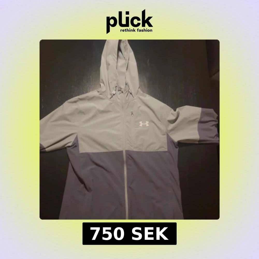 Snygg tvåfärgad vindjacka från Under Armour i ljusgrått och mörkgrått. Jackan har huva med dragsko, hel dragkedja framtill och diskret logga på bröstet. Perfekt för blåsiga dagar och sportiga outfits.