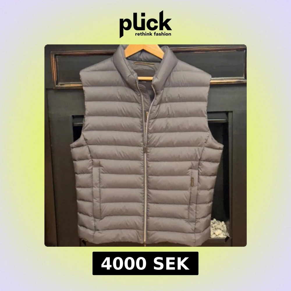 Snygg grå dunväst från MooRER Verona med quiltad design och hög krage. Västen har dragkedja framtill med märkta zip-pullers och två sidofickor. Insidan har gulddetaljer och exklusiva etiketter. Perfekt för lager-på-lager under kyliga dagar.