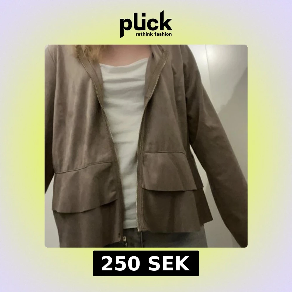 Säljer en stilren beige/brun jacka från Flash med dragkedja framtill. Jackan har långa ärmar och en unik design med dubbla volanger nedtill. Perfekt för en chic look! Ganska tunn. Nypris: 599kr (köpt för 300)