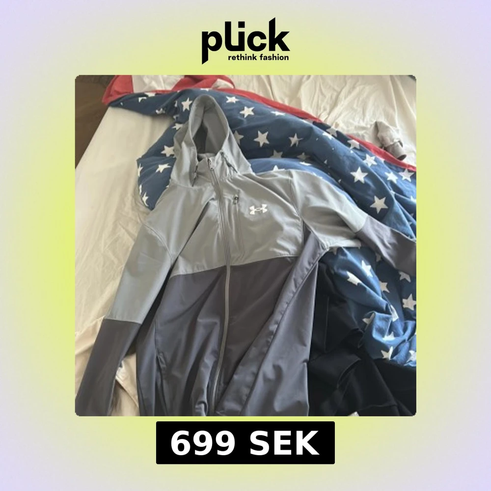 Snygg tvåfärgad vindjacka från Under Armour i ljus- och mörkgrått. Jackan har huva, dragkedja hela vägen och en extra bröstficka med dragkedja. Perfekt för blåsiga dagar och sportiga outfits.