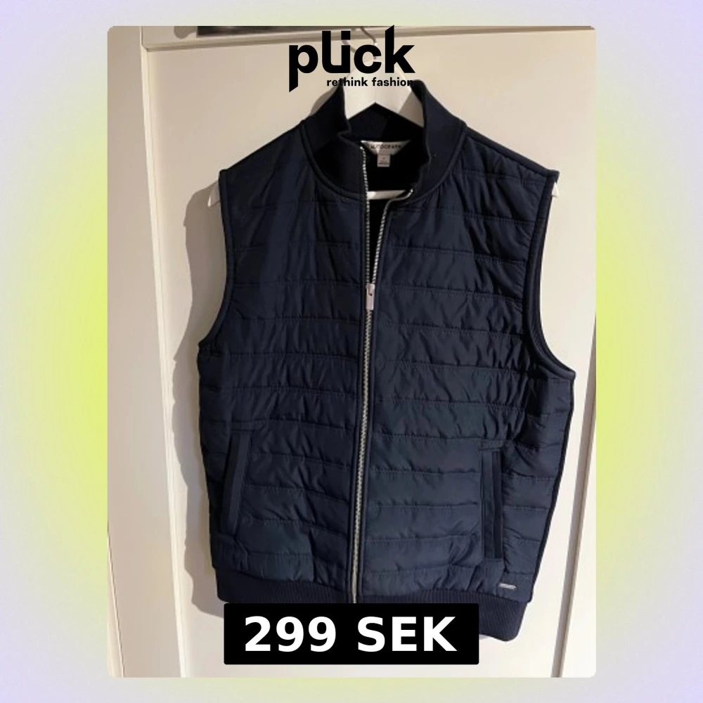 Stilren blå väst från Autograph i storlek M. Västen har quiltad framsida, ribbad krage och nederkant, samt praktiska sidofickor. Dragkedja framtill och slät baksida ger en clean look. Perfekt att slänga över en hoodie eller tröja.