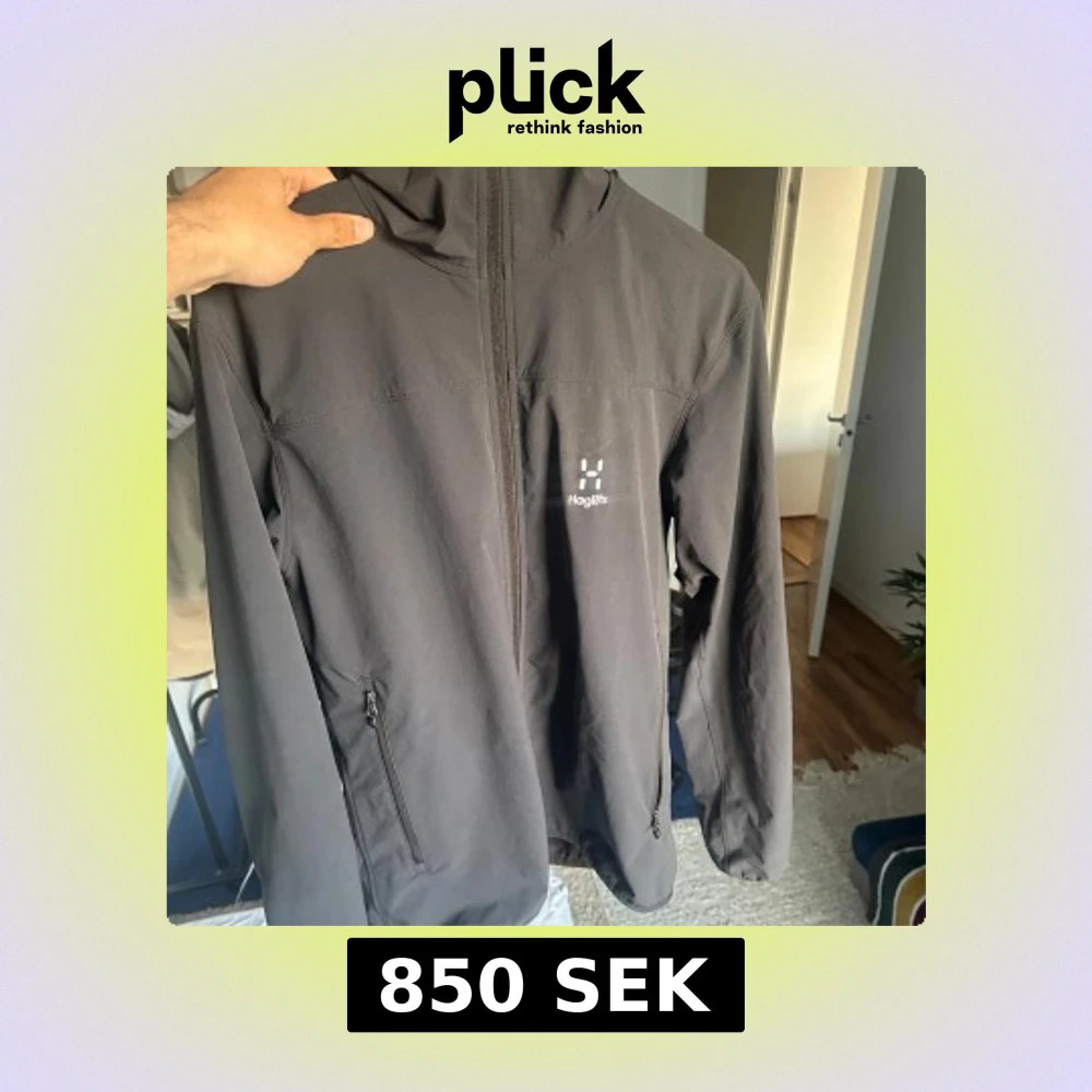 Säljer en svart Haglöfs vindjacka nu perfekt för våren. Den är i storlek M men passar även S. Köpt fårn xxl.