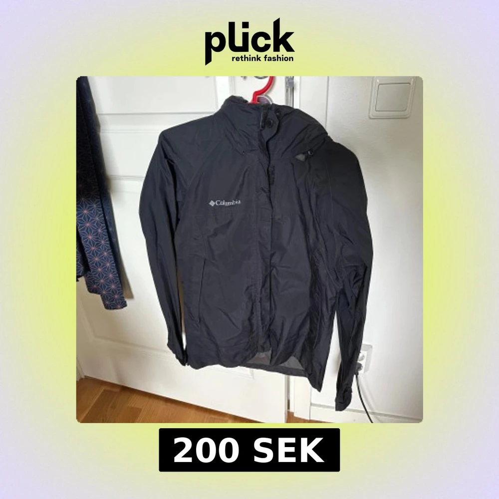 Svart vindjacka från Columbia med huva och dragkedja framtill, långa ärmar och justerbar huva.