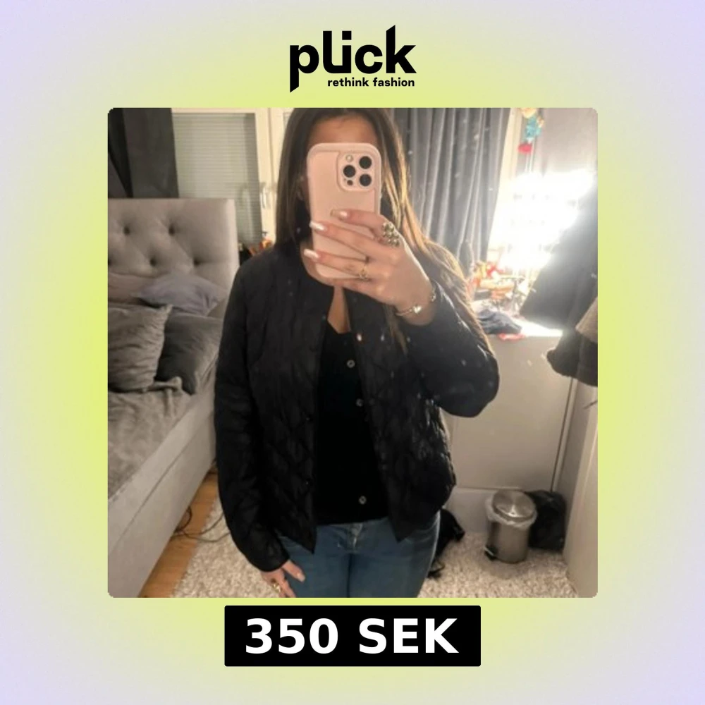 Säljer en stilren svart quiltad jacka med knappar. Perfekt för kyligare dagar och ger en snygg look. Jackan har långa ärmar och en normal passform. Passar bra till både jeans och kjol.