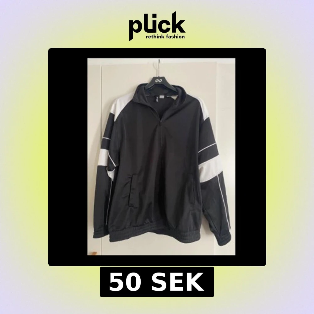 Snygg svart tröja från H&M Divided med vita detaljer på ärmarna och dragkedja framtill. Tröjan har sportig vibe, ståkrage och två fickor.
