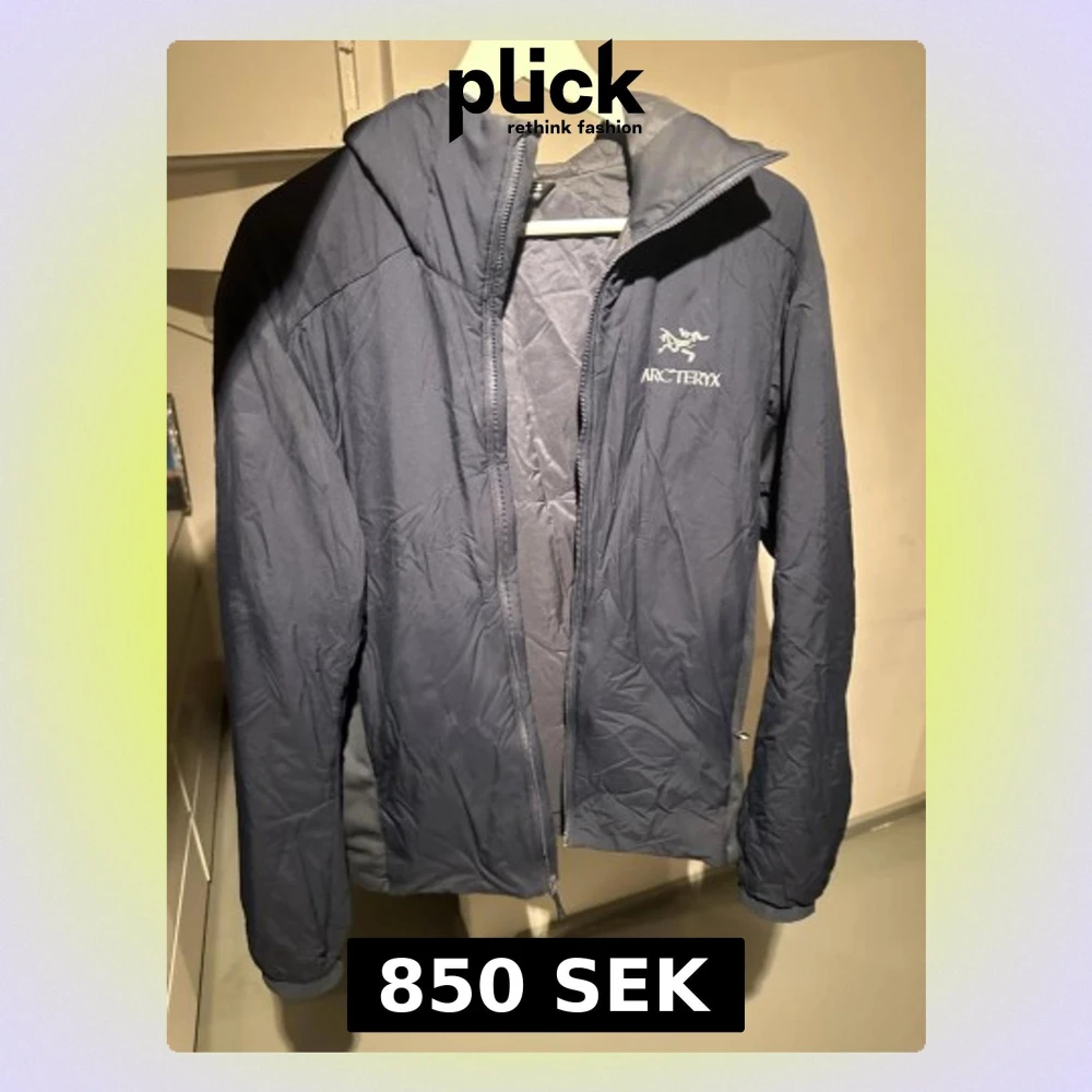 Säljer en mörkblå vindjacka från Arc'teryx med huva och dragkedja framtill. Jackan är lätt och smidig, perfekt för blåsiga dagar. Diskret logga på bröstet och enkel design utan onödiga detaljer. Passar dig som gillar funktion och stil.