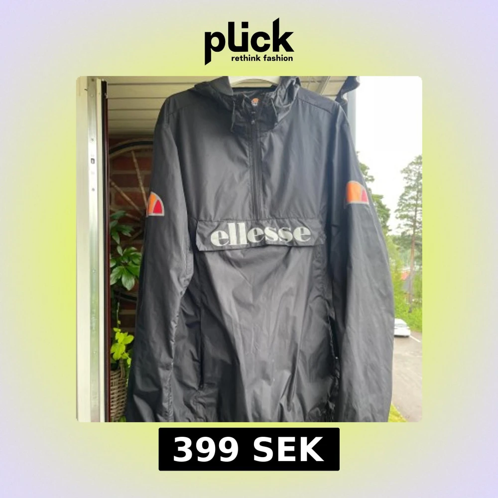 Svart vindjacka från Ellesse med stor logga på bröstet och emblem på båda ärmarna. Jackan har huva, halv dragkedja och en stor ficka framtill. Perfekt för dig som gillar sportig och clean stil.