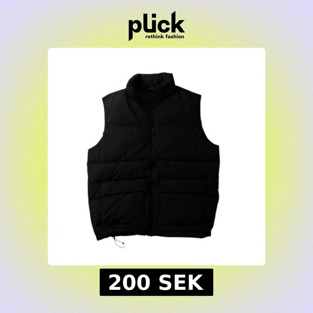 Stilren svart dunväst med hög krage och två stora fickor framtill. Västen har quiltad design och stängs med dragkedja. Perfekt att slänga över en hoodie för en chill look. Justerbar dragsko nertill för extra passform.